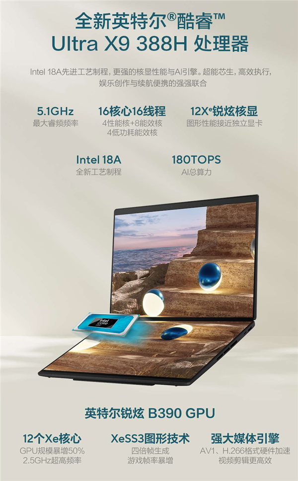 正在AI办公时代,其全新Xe3架构的Arc B390核显规格高达12 Xe,
